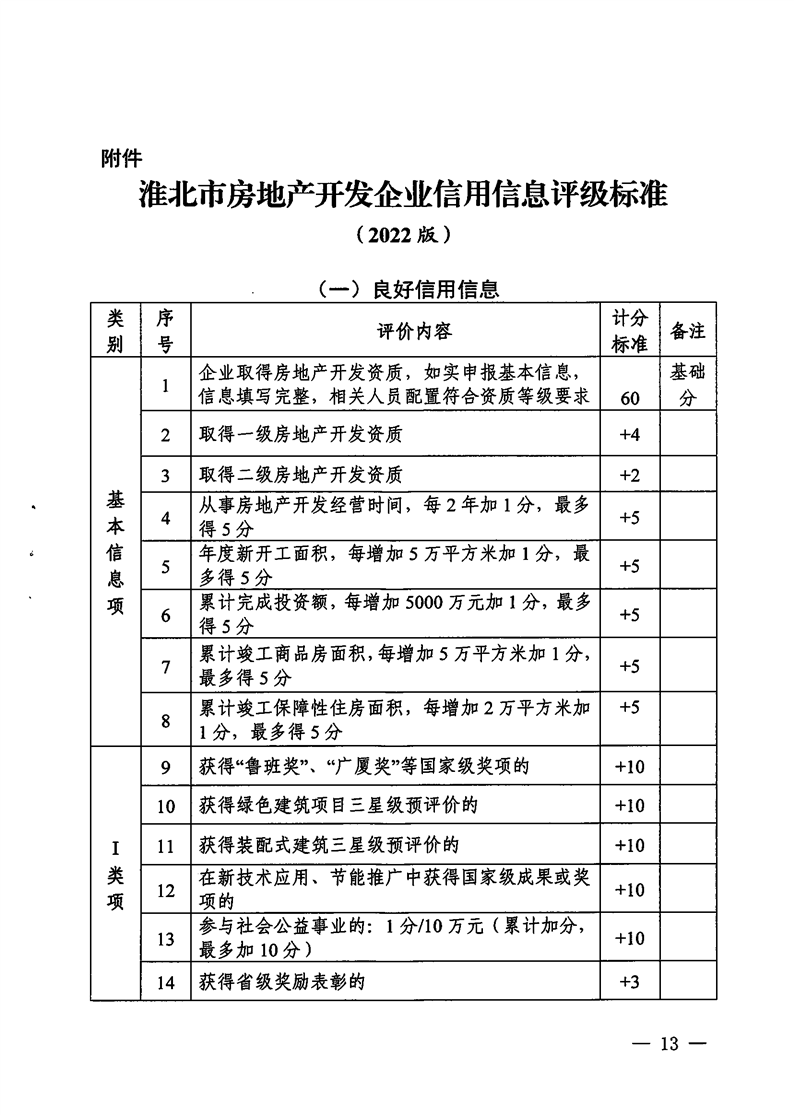 重磅消息!淮北市住房和城鄉建設局官網昨日發布關于印發《淮北市房地產開發企業信用管理辦法》的通知(淮住建規【2022】1號)文件,擬對開發商信用進行評級,并根據開發企業信用不同等級實施差異化管理,為規范房地產開發經營行為,促進房地產業持續健康穩定發展提供政策指引。具體內容如下: